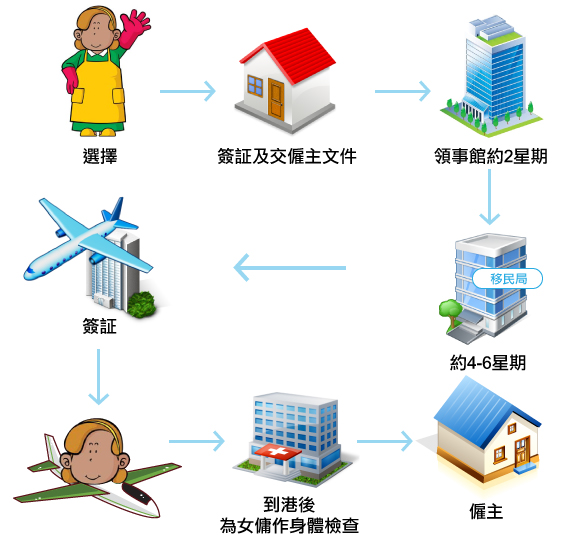 (八)將VISA寄往有關國家及安排外傭到港 (約需2星期)